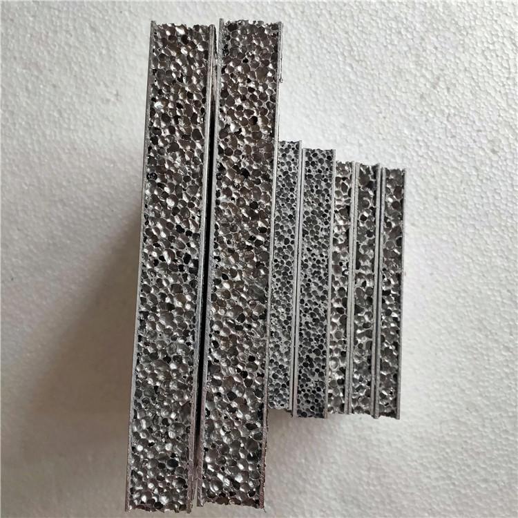 可根據(jù)需求與金屬(鋁板、鋼板等)材料,非金屬(木板、大理石、玻璃纖維、玄武巖纖維、芳輪纖維、碳纖維、橡膠、PE等)材料進(jìn)行單面/雙面復(fù)合。泡沫鋁材料為基材,可進(jìn)行單面或雙面復(fù)合,層間采用高溫?zé)釅赫辰踊虺貜?fù)合。具有輕質(zhì)、高比剛度,耐老化,良好吸能、抗沖擊、防火防爆等性能。